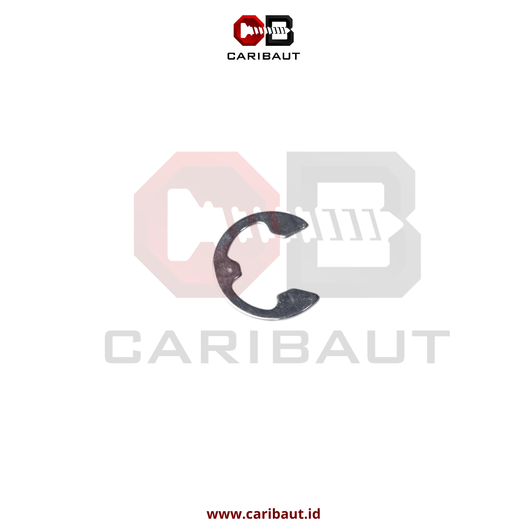 Circlip Type E atau Snap Ring Type E adalah cincin pengunci berbentuk huruf ""E"" yang digunakan untuk menahan komponen pada poros atau lubang agar tidak bergeser. Circlip ini dipasang pada alur (groove) yang telah dibuat di poros dan berfungsi sebagai pengunci komponen seperti roda gigi, bearing, atau pulley.